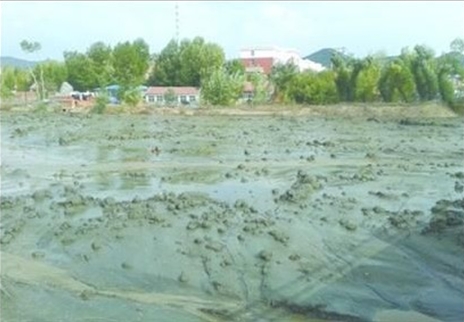 百余米寬的干涸河道很快被尾礦砂灌滿。尾礦砂來自青峰山鎮的建平金源礦業有限公司的尾礦庫,金源礦業年產量3萬噸,瀉出的尾礦砂約有5萬立方米,順著河道一路流了近10公里遠。尾礦砂損壞了八九戶民房,受損民房村民只能暫住在附近親友家,同時由于河道堵塞,村民們只能隔岸相望,小孩放學也只能安頓在朋友家,除了這些,村里的莊稼也被埋了很多。